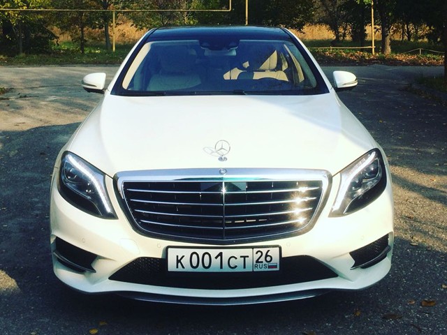 Прокат автомобиля представительского класса Mercedes S 500 белого цвета с водителем в Ставрополе